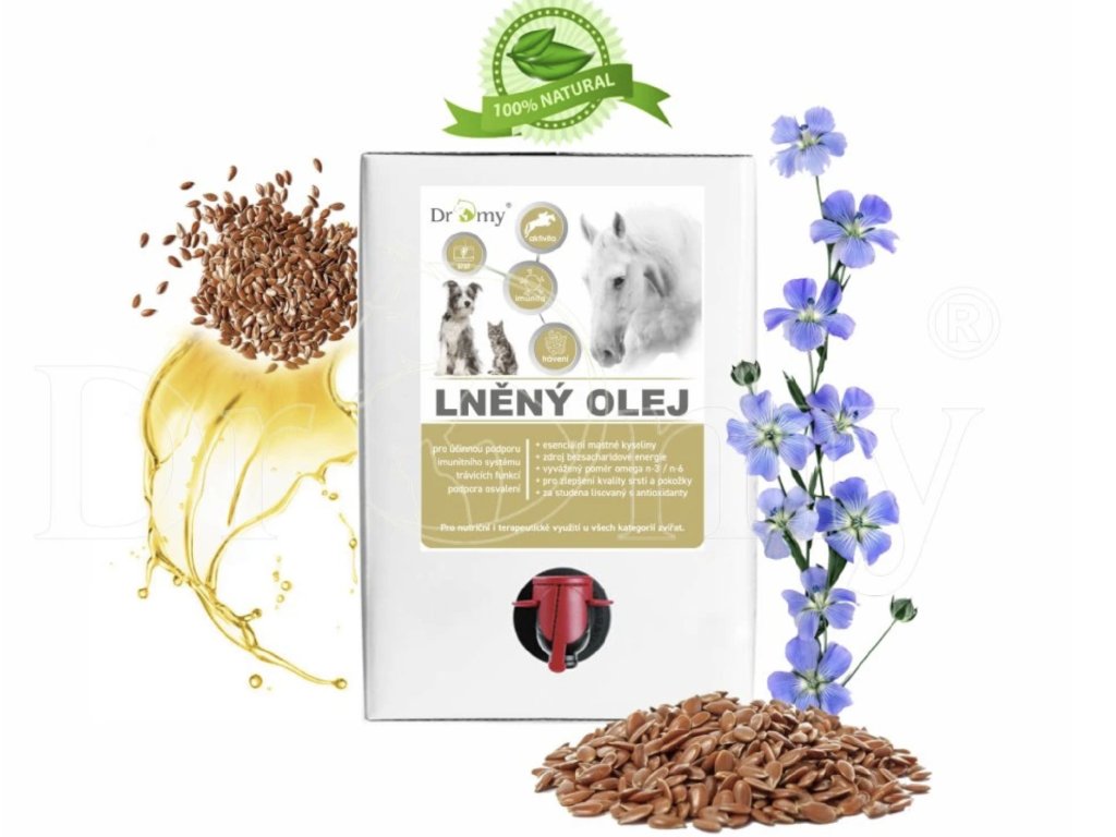 Ľanový olej pre všetky kategórie koní, psov a mačiek, je vyrábaný lisovaním za studena zo semien Linum Usitatissimum Linaceae.