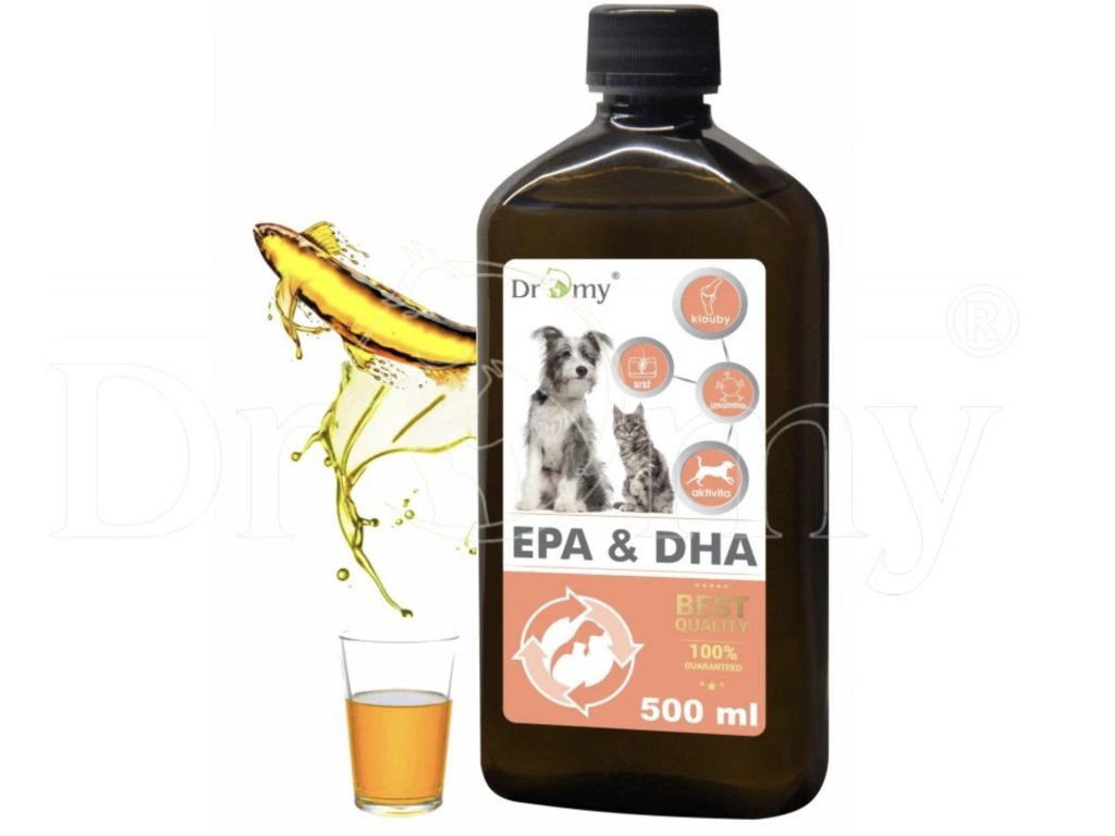 Omega 3 fish olej EPA & DHA chránia cievny aparát, udržiava dostatočný prietok krvi orgány a svaly náročnými na zásobenie kyslíkom, čo je vhodné predovšetkým u aktívnych plemien,